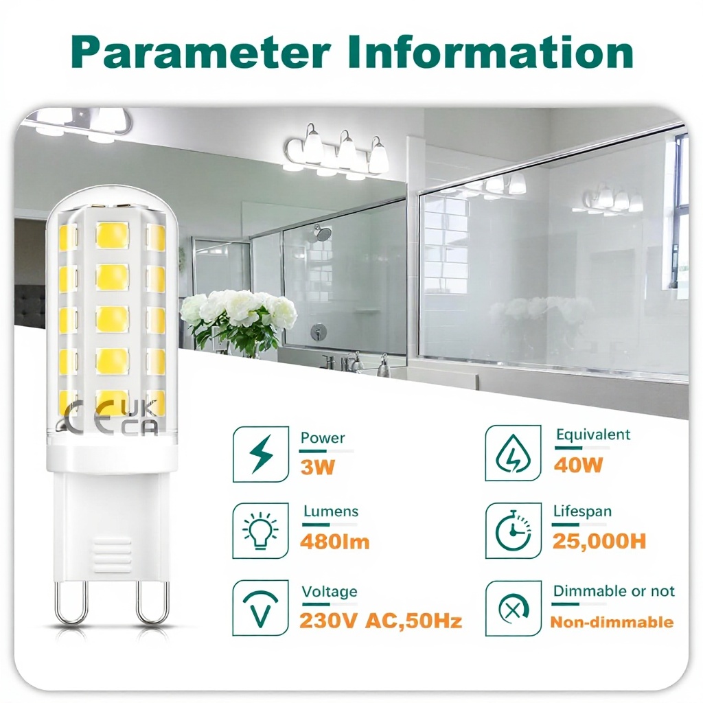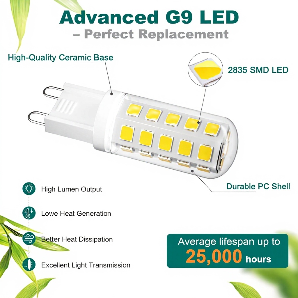 Conçue pour les particuliers et professionnels recherchant un éclairage économique et performant. Elle convient particulièrement aux personnes soucieuses de réduire leur consommation d’énergie sans compromis sur la qualité lumineuse, ainsi qu’aux propriétaires de luminaires nécessitant des ampoules G9 compactes.
