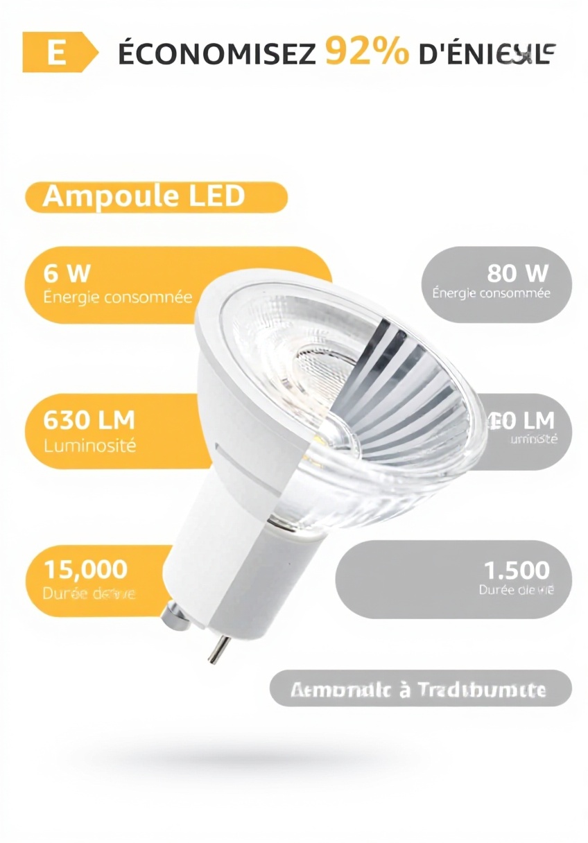 - Économie d’énergie jusqu’à 92% par rapport aux ampoules traditionnelles