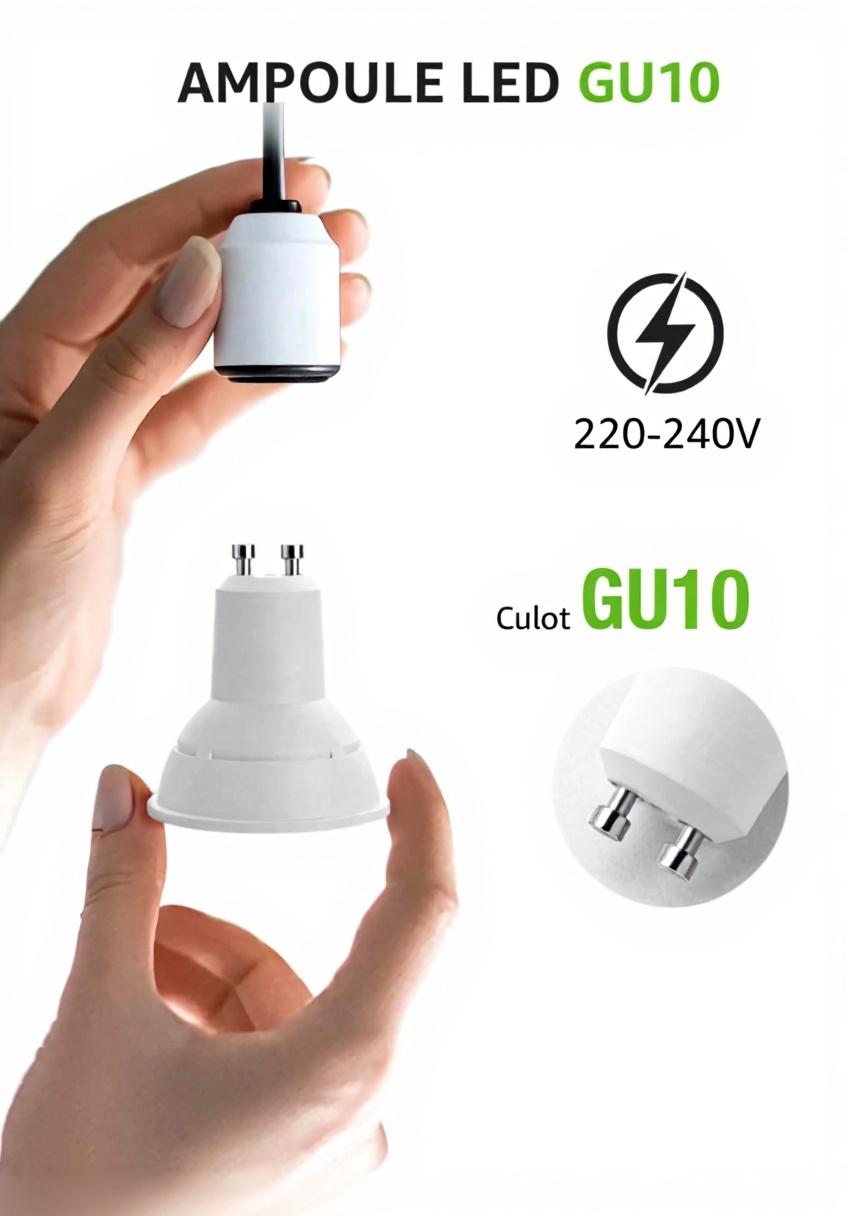 - Installation facile avec culot GU10 standard compatible avec les supports existants