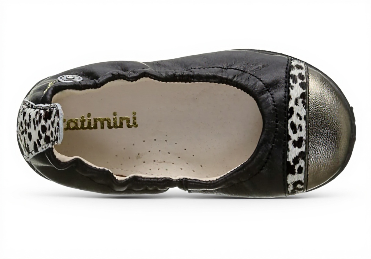 Ces ballerines Catimini Milan sont fabriquées en cuir de qualité, offrant souplesse et durabilité. Le design unique avec motif léopard noir ajoute une touche de style, tandis la semelle en caoutchouc garantit une adhérence optimale pour les activités quotidiennes.