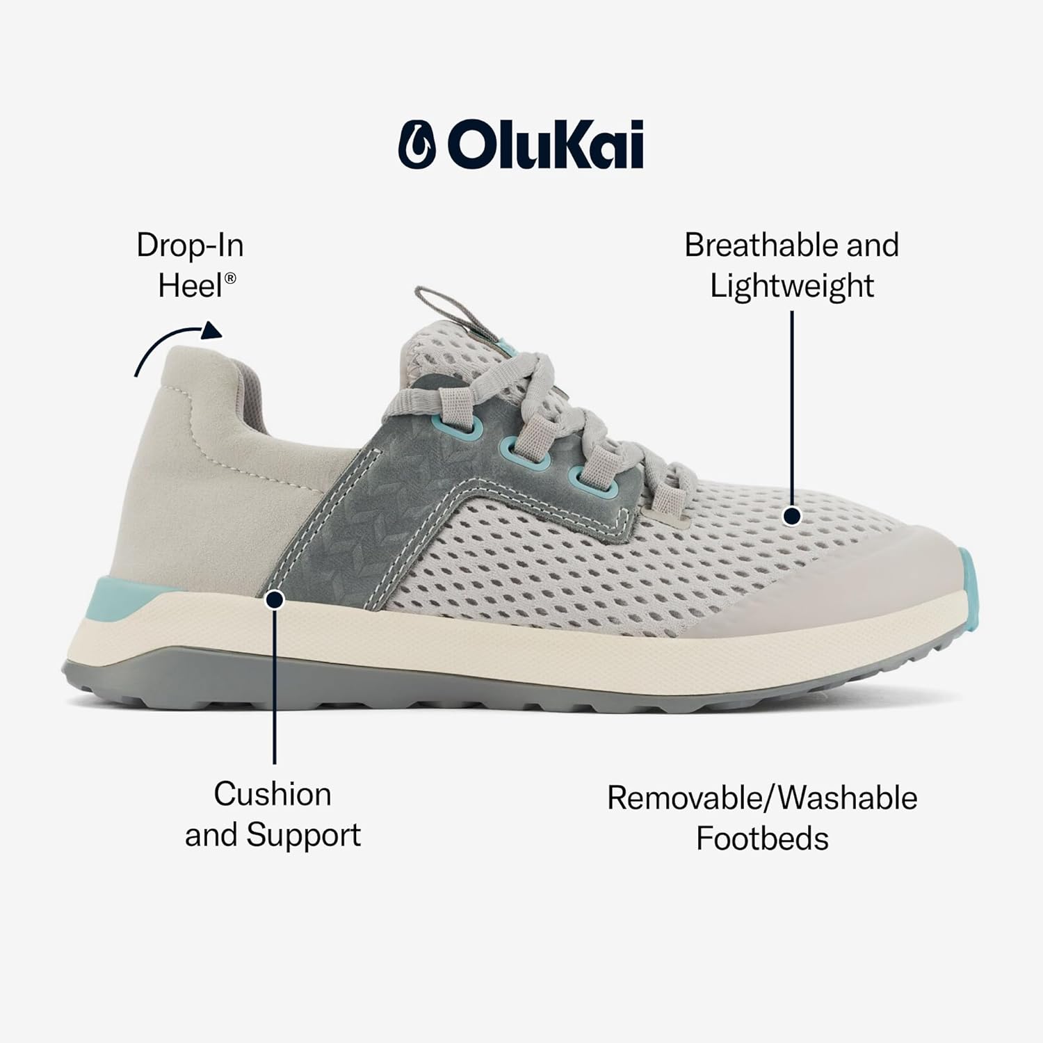 Les baskets OLUKAI Wailuku sont conçues avec une maille douce et respirante, offrant légèreté et aération pour un confort optimal. Leur design breveté à talon rabattable permet une utilisation en chaussure ou en sandale, tandis que la semelle en caoutchouc assure une adhérence fiable sur diverses surfaces.