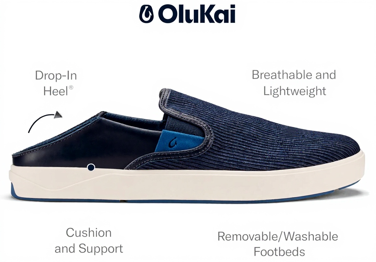 Les baskets Lae’ahi Kapa d’OLUKAI représentent l’équilibre parfait entre style et fonctionnalité. Inspirées de la sensation de marcher pieds nus à Hawaï, ces chaussures intègrent une doublure en maille respirante et un design breveté Drop-In Heel permettant une conversion rapide entre mode chaussure et tong. La construction allie matériaux premium et savoir-faire artisanal pour une durabilité exceptionnelle.