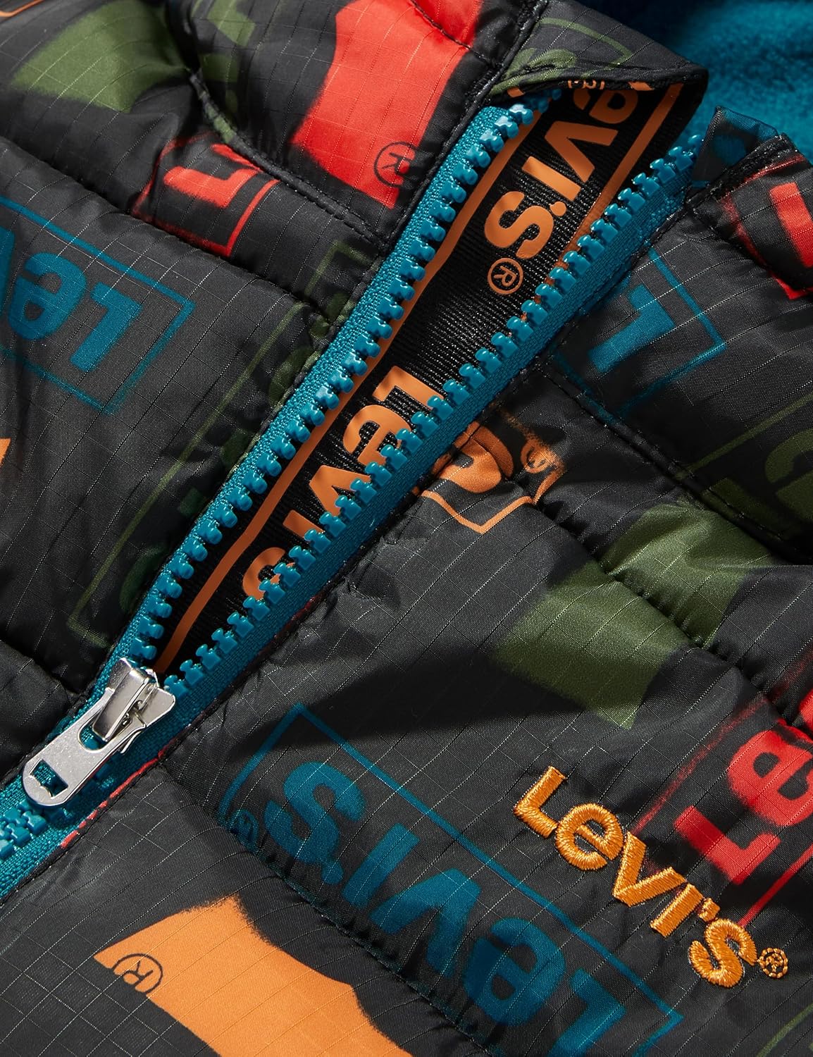 Ce blouson Levi’s pour bébé garçon est une doudoune d’hiver conçue pour offrir chaleur et confort. Il présente un logo imprimé intégralement sur le devant, une fermeture éclair complète pour un enfilage facile, une capuche ajustable avec col haut et des poignets coupe-vent. La doublure en polaire assure une isolation thermique optimale, tandis que le design moderne s’adapte aux besoins des jeunes enfants.