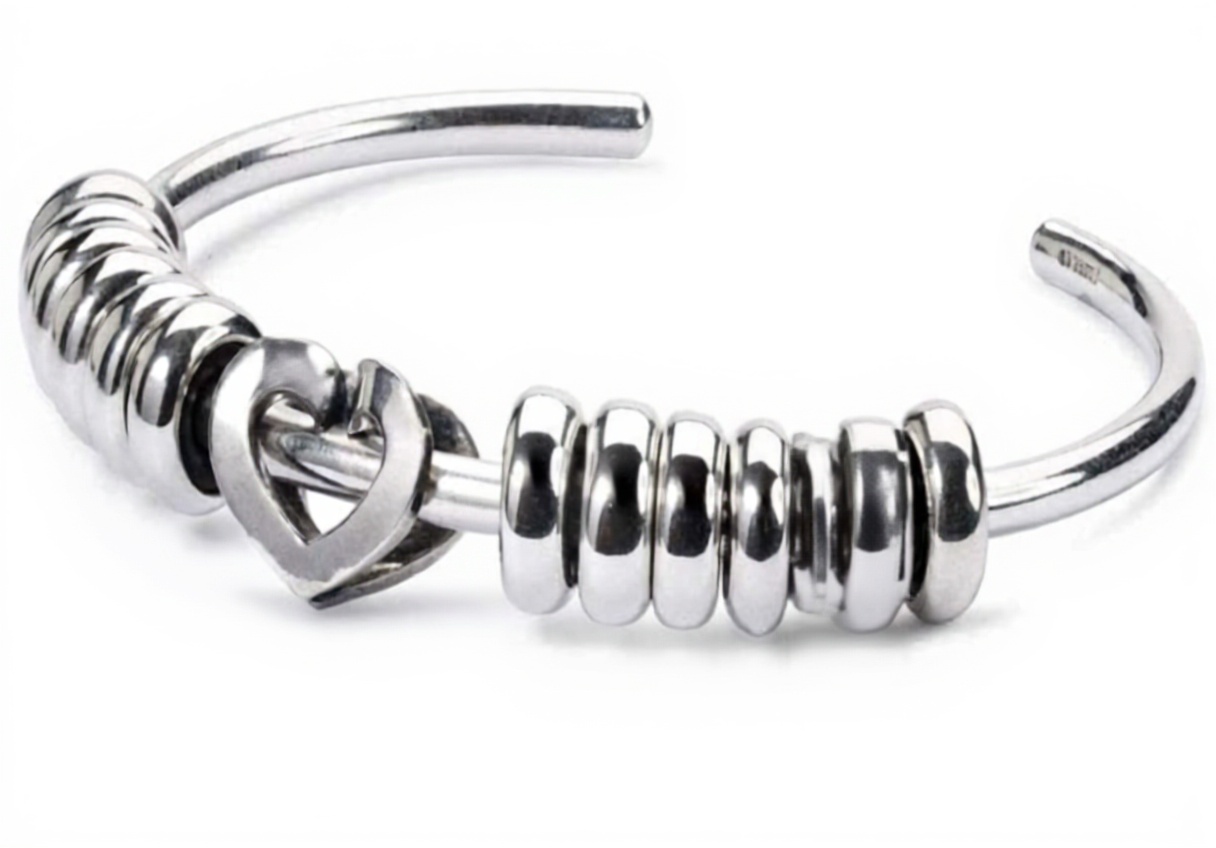 Le bracelet mesure 8,89 x 8,71 x 2,54 cm et pèse 40,82 grammes, assurant un port confortable sans lourdeur. Conçu par Trollbeads, il allie précision et durabilité, avec un modèle numéroté 15403 pour une authenticité vérifiée.