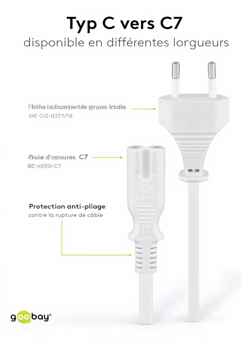 Câble d’alimentation Goobay 96035 type C vers C7