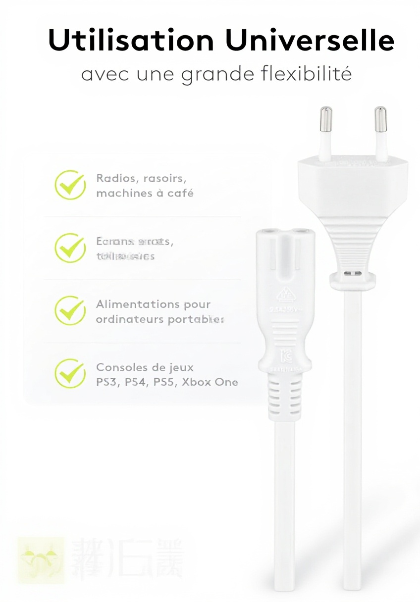 Utilisez ce câble pour connecter des téléviseurs, écrans plats, lecteurs BlueRay, ou consoles de jeux comme PlayStation et Xbox dans votre salon ou bureau. Il est également adapté aux ordinateurs portables, radios et autres appareils nécessitant une alimentation fiable, que ce soit à la maison ou en déplacement.