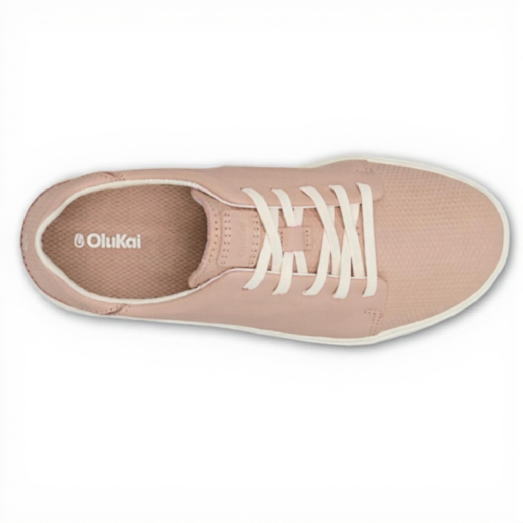 Modèle 20484-6QWB, disponible en taille 38.5 EU, couleur rose pâle et blanc vif. Poids : 748,43 grammes. Fabriqué par OluKai avec des dimensions de colis de 32,59 x 18,39 x 11,2 cm.