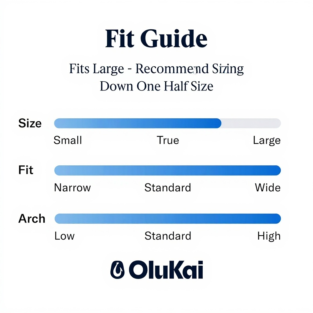 Ces chaussures sont conformes à la taille standard avec une coupe large et un soutien de la voûte plantaire moyen à élevé. Le modèle pèse environ 907 grammes et les dimensions du colis sont de 31,9 x 21,31 x 12,6 cm. Fabriqué par OLUKAI, l’article numéro 10128 assure une construction robuste et fiable.