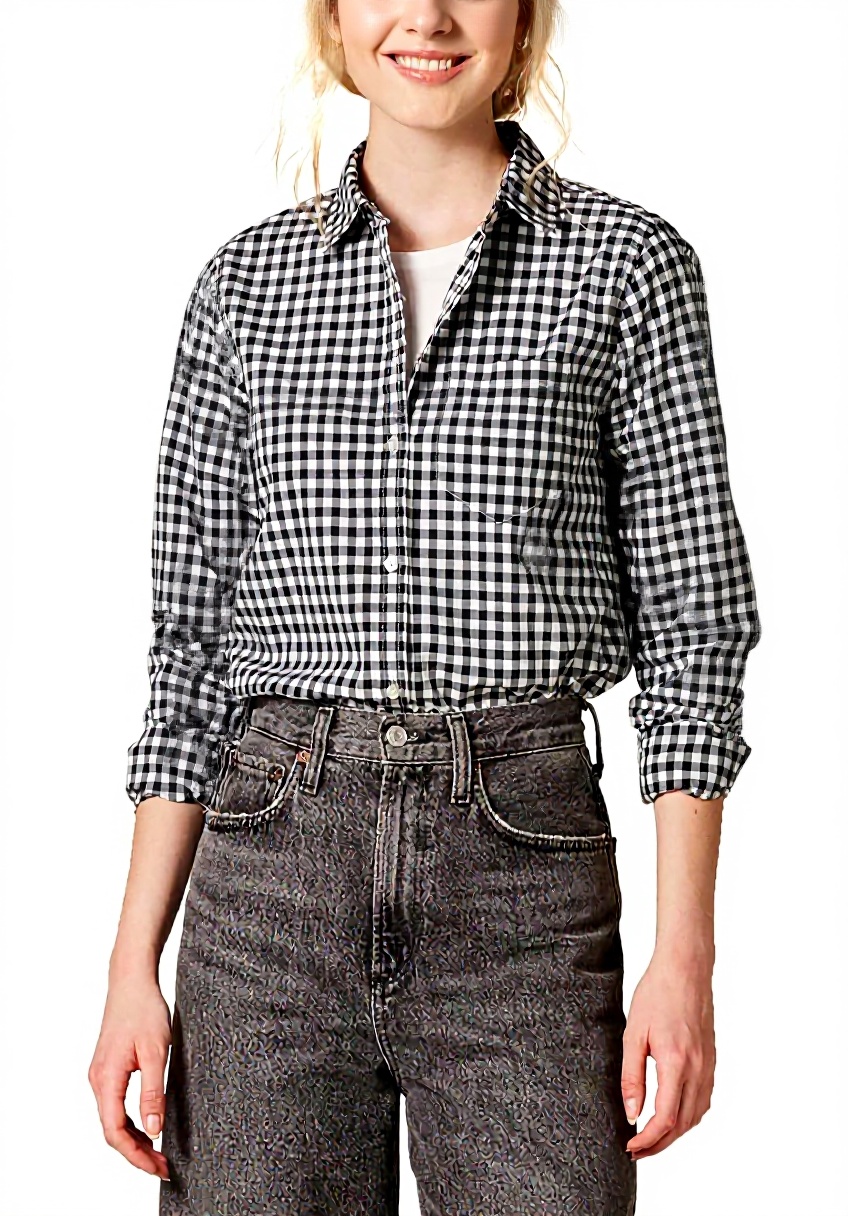 Cette chemise classique pour femme est confectionnée en popeline de coton légère et aérienne, lavée pour une sensation douce et un confort naturel. Sa coupe près du corps offre une grande liberté de mouvement, tandis que les détails comme le col classique et les poignets de chemise ajustables ajoutent une touche d’élégance à chaque port.