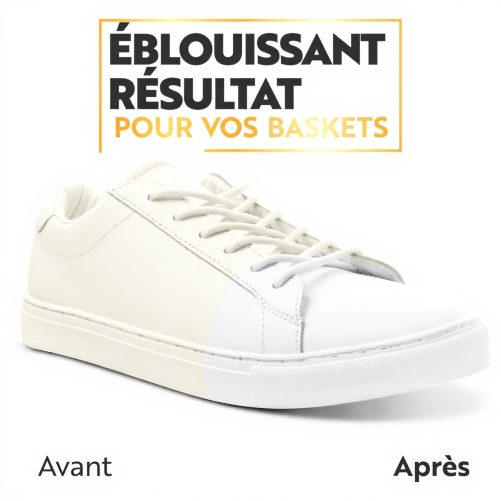 - Redonne une blancheur éclatante aux chaussures et semelles jaunies