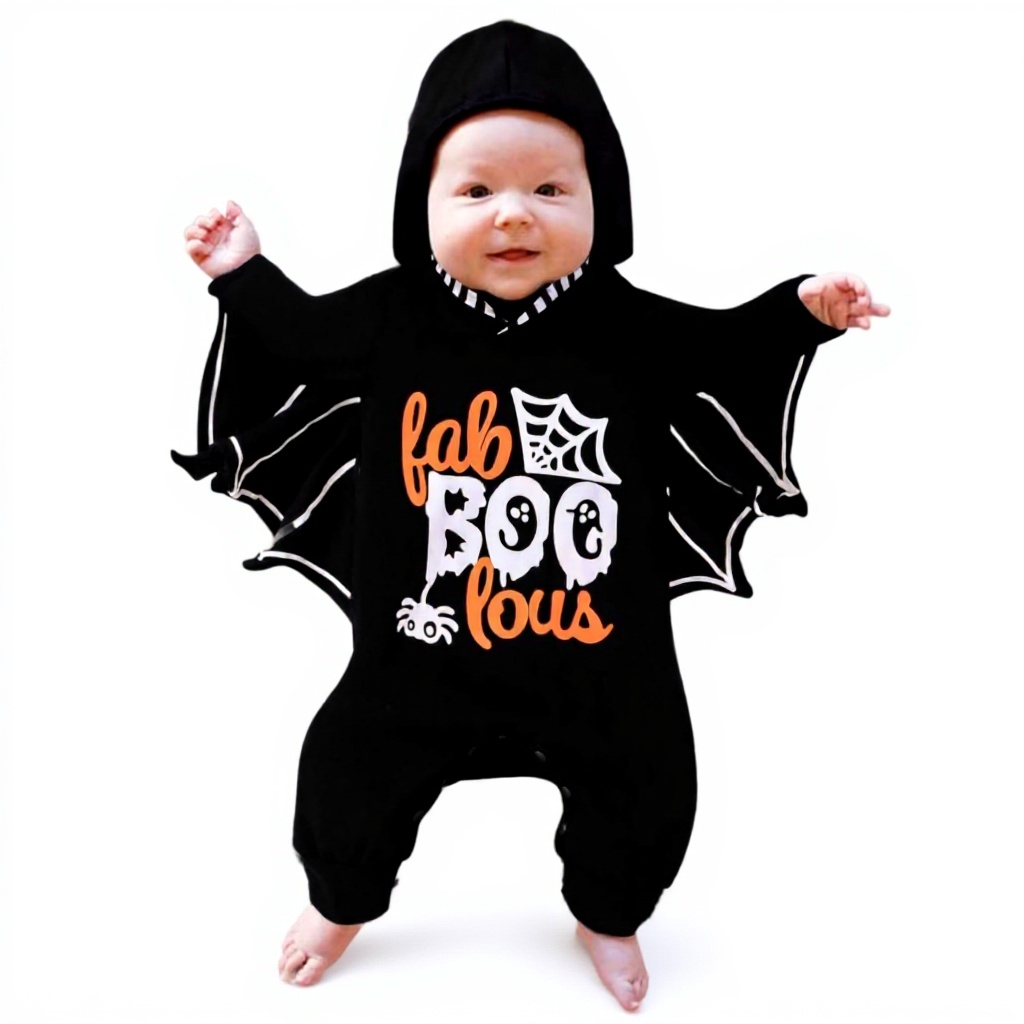 Cette combinaison Catimini pour bébé est conçue avec des manches longues et une capuche, ornée d’un imprimé lettre et dessin animé sur le thème d’Halloween. Fabriquée avec des matériaux doux, elle assure confort et liberté de mouvement pour les tout-petits.