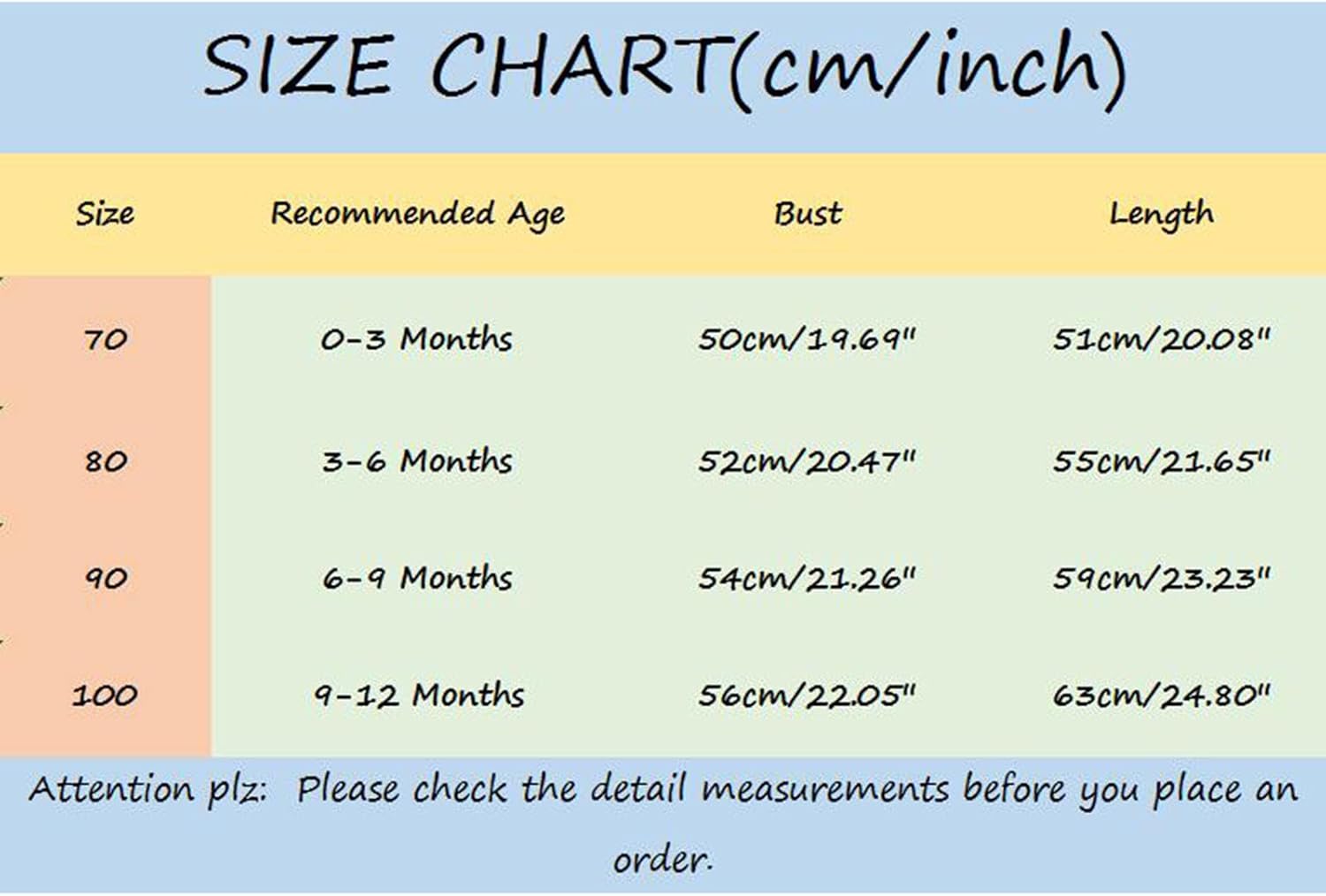 La combinaison est disponible en tailles de 0 à 24 mois, incluant des options comme 0-3 mois, 3-6 mois, et jusqu’à 18-24 mois, pour s’adapter à différentes étapes de croissance.