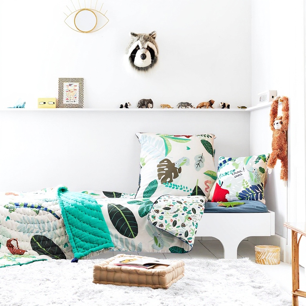 Utilisez ce coussin pour habiller le lit de votre enfant, ajoutant une touche décorative gaie et réconfortante. Il peut aussi servir de coussin de chaise dans la chambre ou le salon, offrant un support confortable pendant les moments de lecture ou de jeu. Son design jungle s’intègre parfaitement dans les ambiances thématiques, stimulant l’imagination des petits.