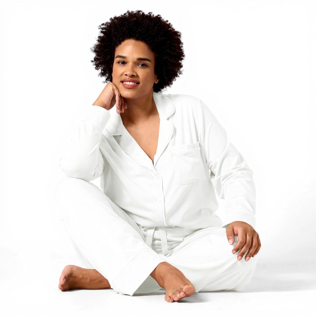 Conçu pour les femmes recherchant un pyjama fonctionnel et élégant, notamment celles appréciant les matières naturelles et les coupes amples. Les personnes aux morphologies variées trouveront leur bonheur grâce aux tailles étendues incluant les grandes tailles.