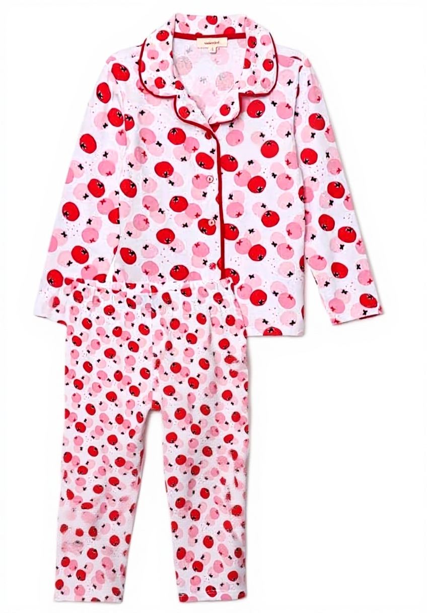 Cet ensemble pyjama Catimini pour fille de 8 ans est conçu en jersey 100% coton, offrant une douceur et un confort exceptionnels pour des nuits reposantes. L’imprimé pommes et le col V avec finitions croquet ajoutent une touche ludique et élégante, parfaite pour le quotidien ou les occasions spéciales.