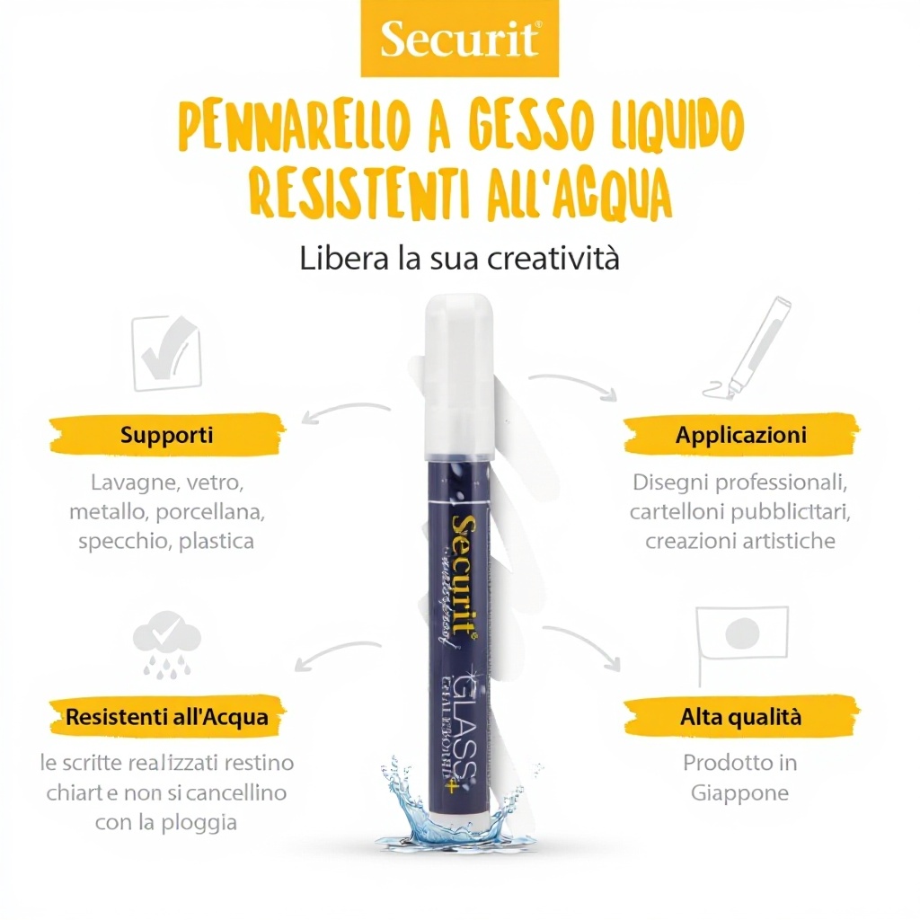 Ce feutre craie étanche de la marque SECURIT est conçu avec une pointe biseautée de 2 à 6 mm, permettant des traits précis et adaptables. Fabriqué avec une encre blanche à haute opacité, il résiste à l’humidité et sèche rapidement pour un usage professionnel sur diverses surfaces.