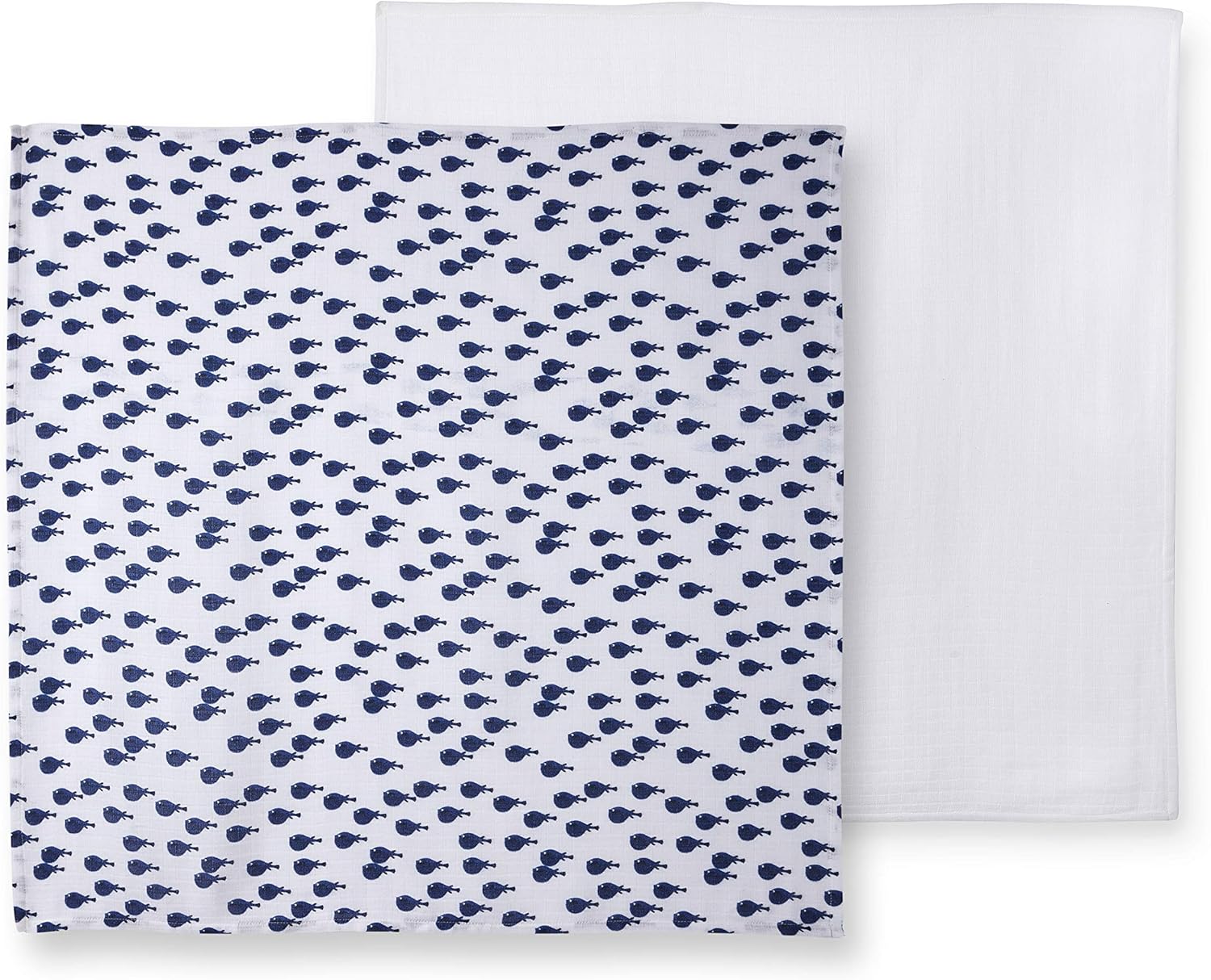 Ce lot de 2 langes Catimini est conçu en gaze de coton 100% de haute qualité, offrant une douceur et une respirabilité optimales pour la peau délicate de bébé. Le design côtier associe un imprimé bleu maritime et un uni blanc, apportant élégance et fonctionnalité.