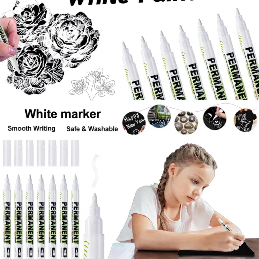 Ces marqueurs blancs permanents YUVKIN se distinguent par leur encre acrylique indélébile qui résiste à l’eau et à la lumière. La pointe fine de 1,0 mm permet un contrôle précis pour des tracés nets et détaillés, tandis que le séchage rapide évite les bavures sur vos créations.
