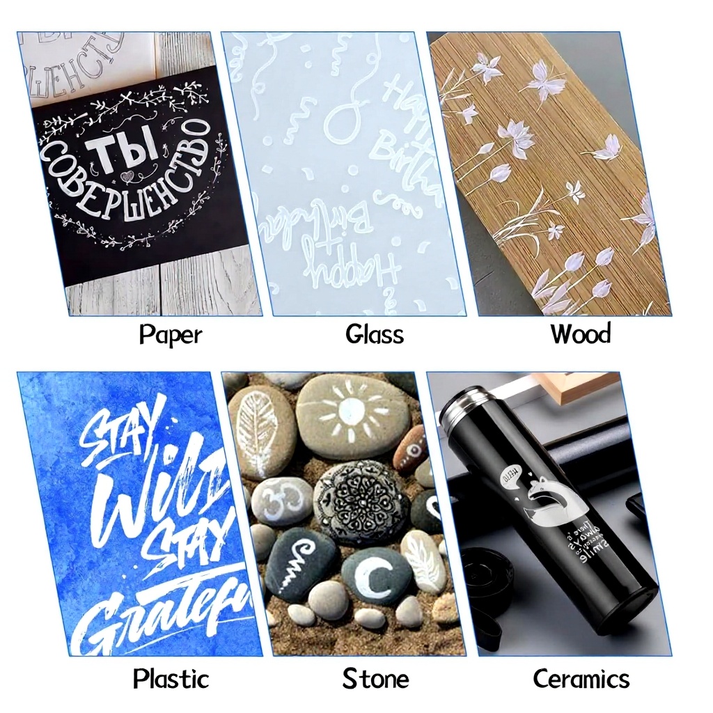 Utilisez ces marqueurs pour personnaliser des vêtements en coton, décorer du bois, créer des motifs sur verre ou plastique, ou réaliser des dessins sur papier foncé. Parfaits pour les ateliers créatifs, la customisation de textiles, les projets scolaires ou les loisirs à domicile, ils s’adaptent à de nombreuses surfaces.