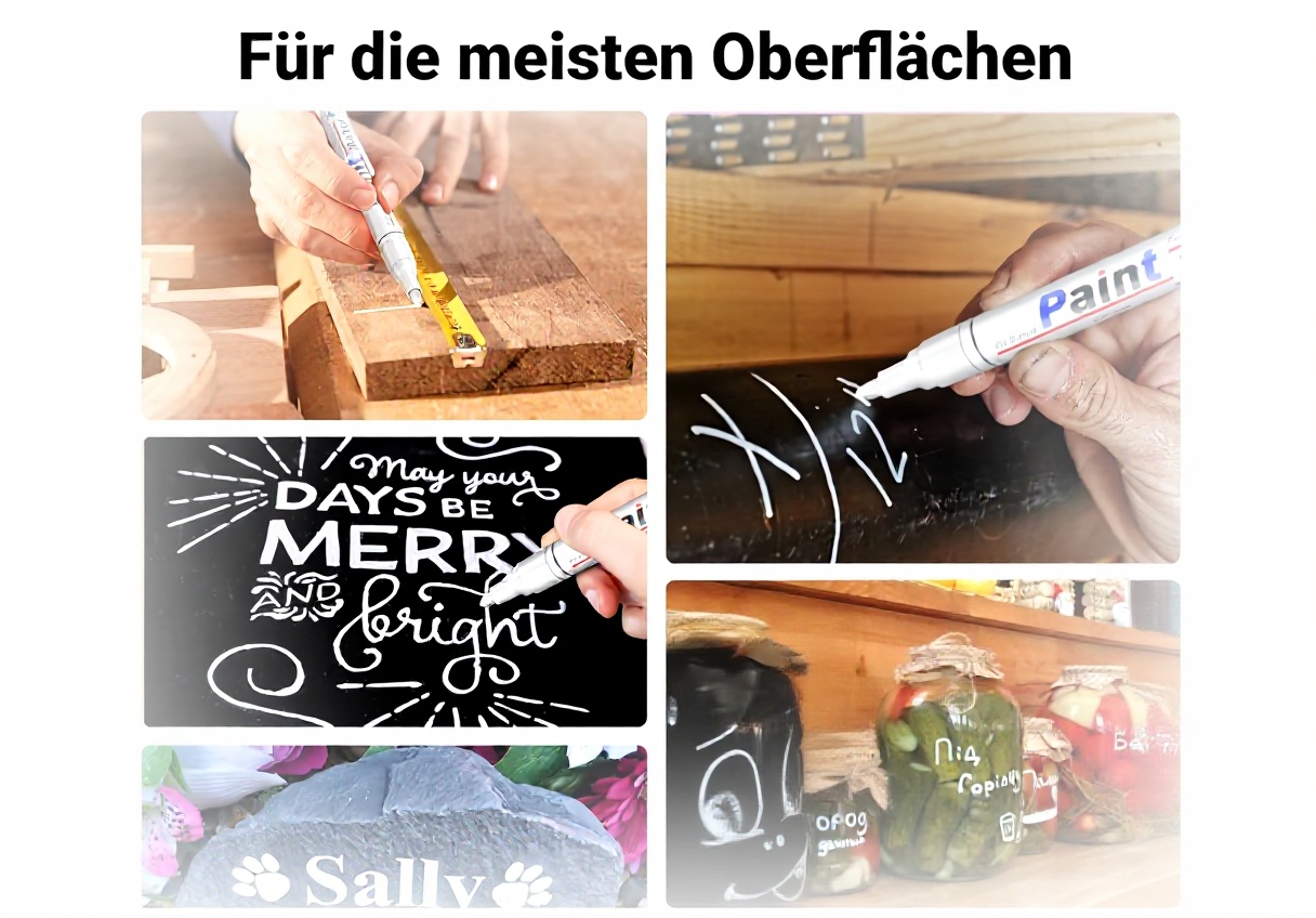 Utilisez ces marqueurs pour identifier des pièces mécaniques, marquer des pneus, ou personnaliser des objets en bois, verre ou plastique. Ils sont parfaits en atelier, pour le bricolage, ou dans des projets artistiques nécessitant un marquage résistant aux intempéries.