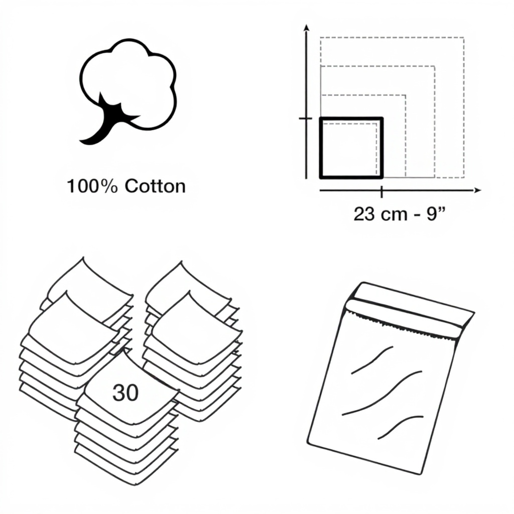 Ces mini mouchoirs en coton 100% offrent une solution économique et écologique pour un usage quotidien. Leur tissage en coton 40S assure une absorption optimale tout en maintenant une texture douce et résistante.