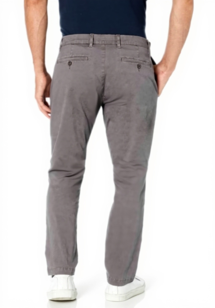 Le pantalon est disponible dans une large gamme de tailles, allant du 28W au 42W, avec différentes longueurs de jambe (28L à 36L). Les coloris incluent le brun kaki, le noir, le blanc, le gris et le vert olive. L’ouverture des jambes est de 19,7 cm pour la taille 42. Il présente une braguette zippée avec fermeture à boutons, des poches obliques à l’avant, une poche à cinquième pièce à la ceinture et des poches passepoilées à l’arrière.