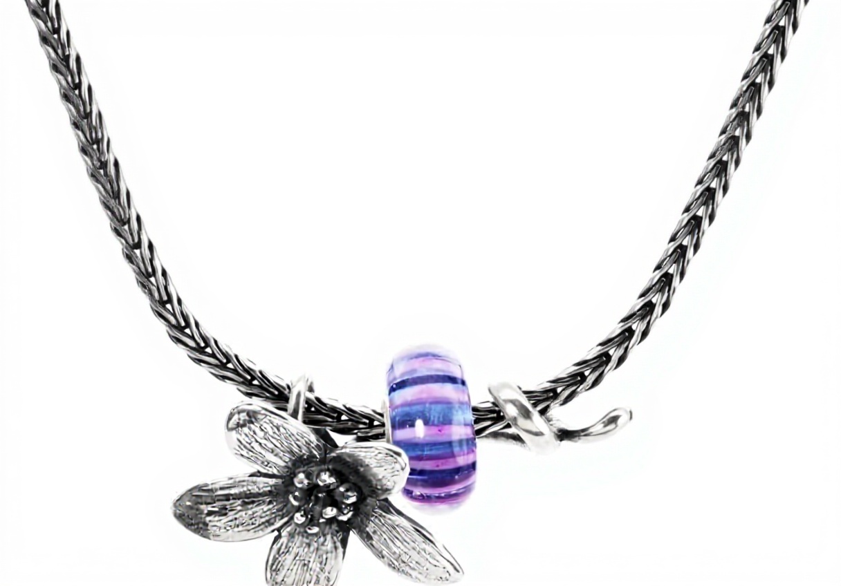 Ce pendentif Trollbeads en argent 925 présente un design détaillé en forme d’anémone, symbole de délicatesse et de naturel. Fabriqué avec soin, il met en valeur un travail artisanal précis pour un bijou résistant et esthétique.