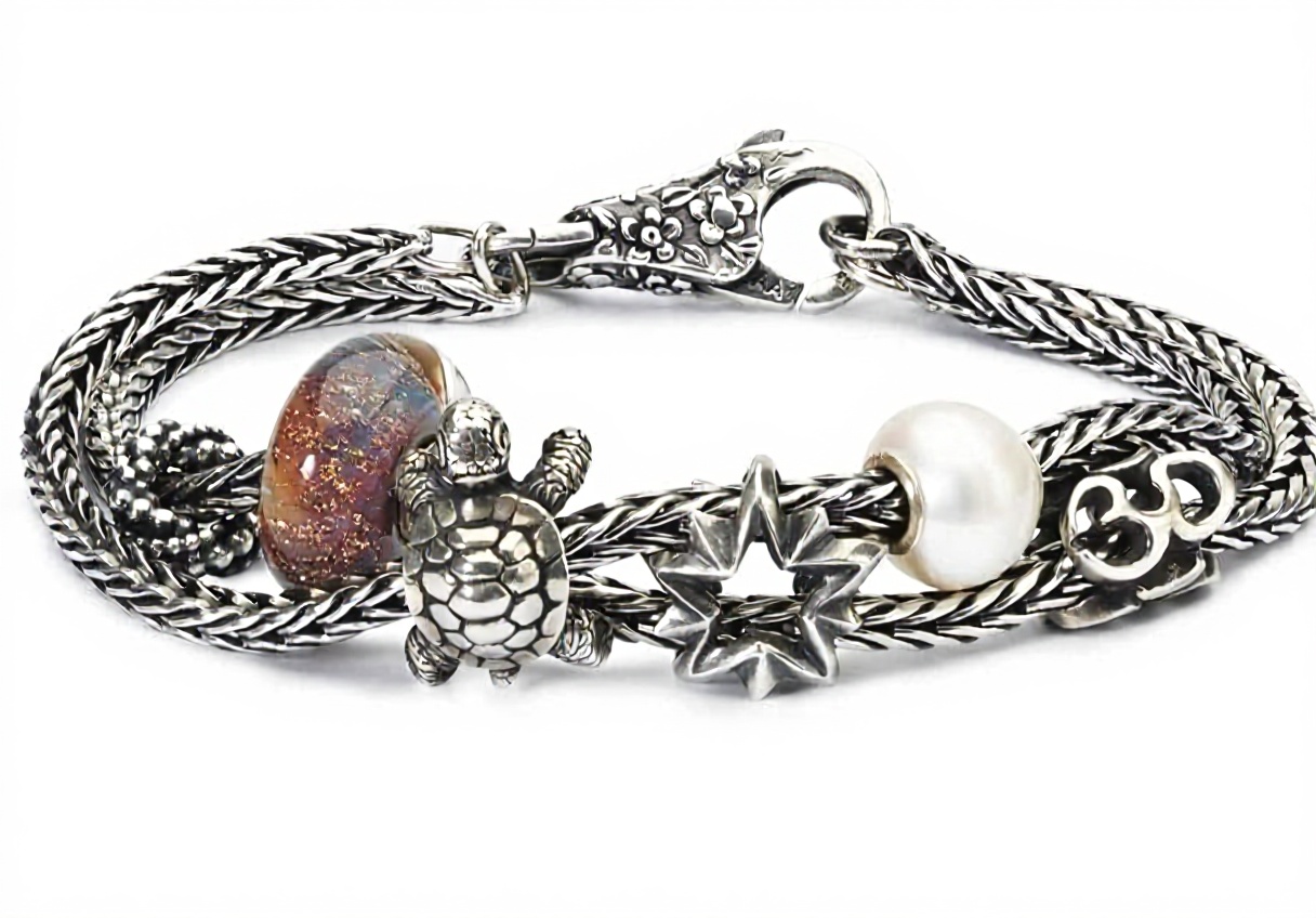 Elle peut être facilement ajoutée à des bracelets ou colliers compatibles avec les systèmes de charmes Trollbeads, en la clipsant ou en la vissant selon le modèle.
