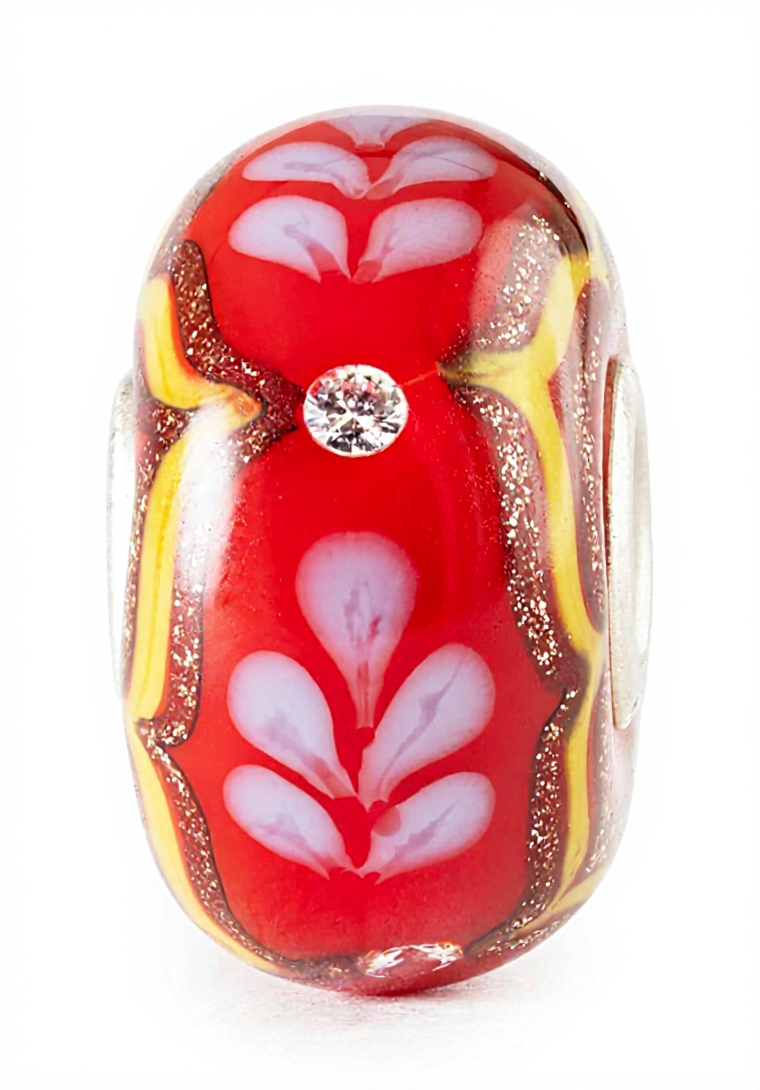 La perle présente des vagues dorées, des fleurs roses délicates et une base rouge audacieuse, rehaussée par des zircons scintillants qui ajoutent de la luminosité. Chaque pièce est fabriquée à la main sur une flamme libre, garantissant des variations subtiles de taille, de couleur et de design qui en font une œuvre d’art distinctive.