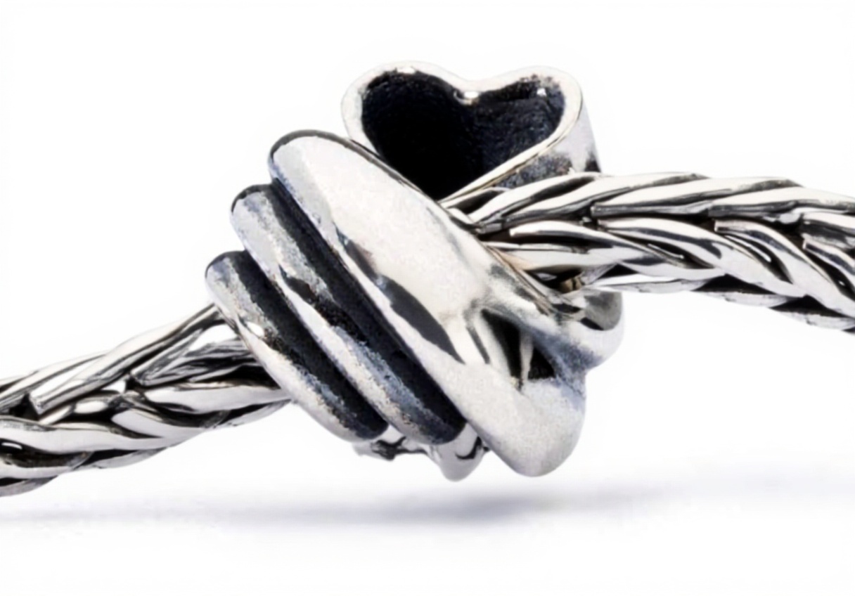 Cette perle Trollbeads est conçue en argent sterling 925, façonnée à la main en forme de cœur avec des détails délicats. Elle s’inscrit dans la tradition danoise de bijoux personnalisables, offrant une finition soignée et une symbolique romantique, idéale pour exprimer des émotions à travers des accessoires uniques.