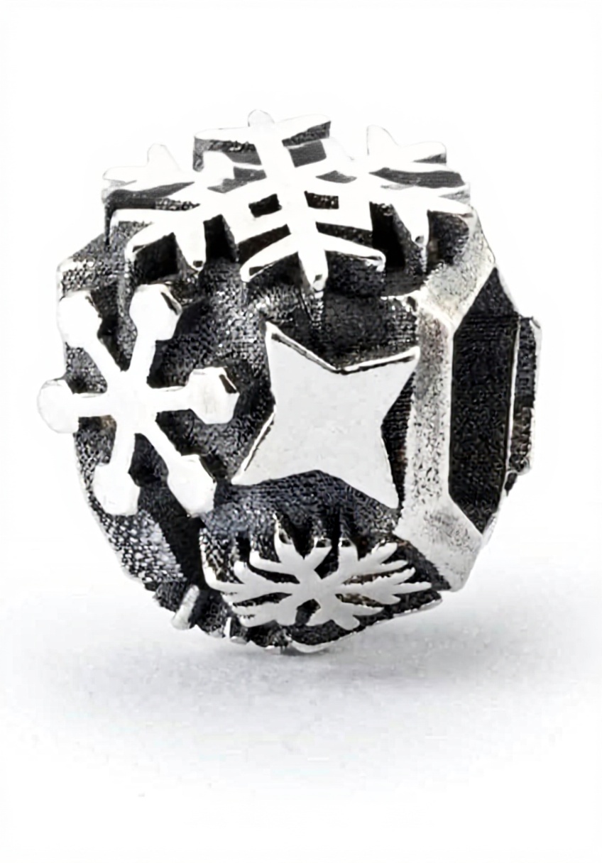 Cette perle Trollbeads arbore un design délicat de flocons de neige, réalisé en argent sterling de haute qualité pour une finition brillante et durable. Sans gemme, elle mise sur l’élégance épurée et la polyvalence, s’intégrant facilement à diverses collections de bijoux charms.