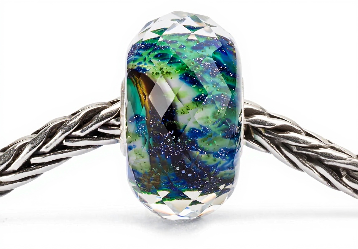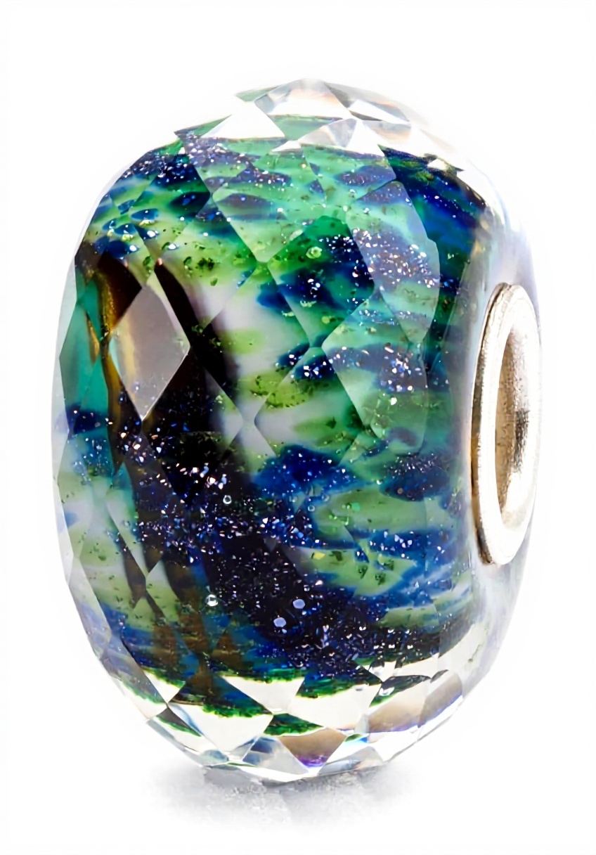 La perle Trollbeads Perception est fabriquée en verre de qualité, avec des nuances de vert et de bleu qui créent un effet visuel captivant. Son design artisanal et ses finitions soignées en font un accessoire unique pour enrichir votre collection de bijoux.