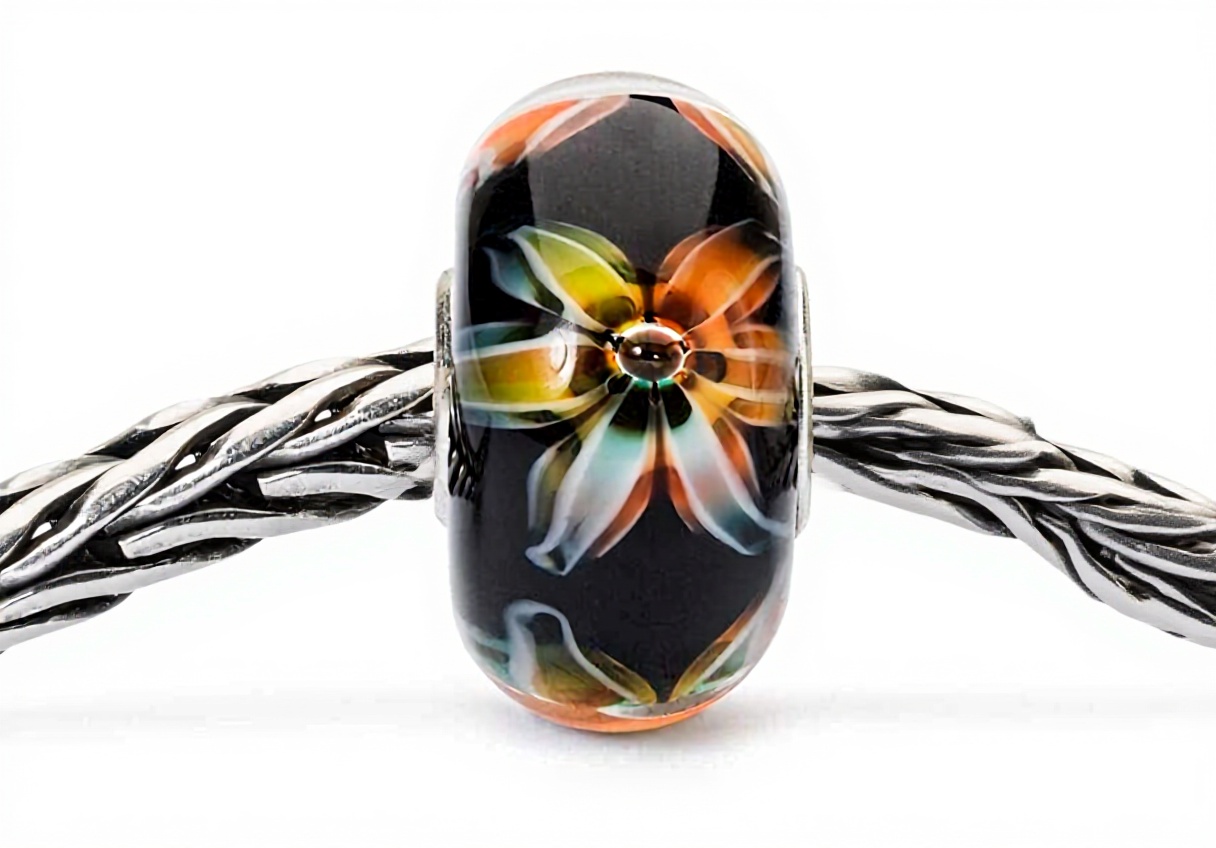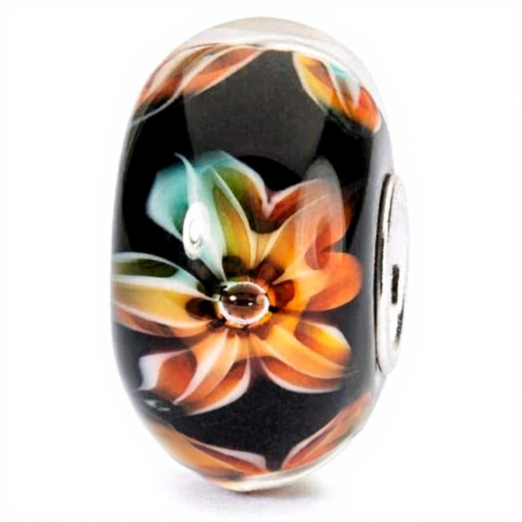 Cette perle Trollbeads est fabriquée en verre de Murano italien, chauffé à la flamme nue pour créer des motifs uniques de fleurs multicolores. Chaque pièce est artisanale, garantissant qu’aucune perle n’est identique, avec une finition soignée qui met en valeur son éclat naturel.