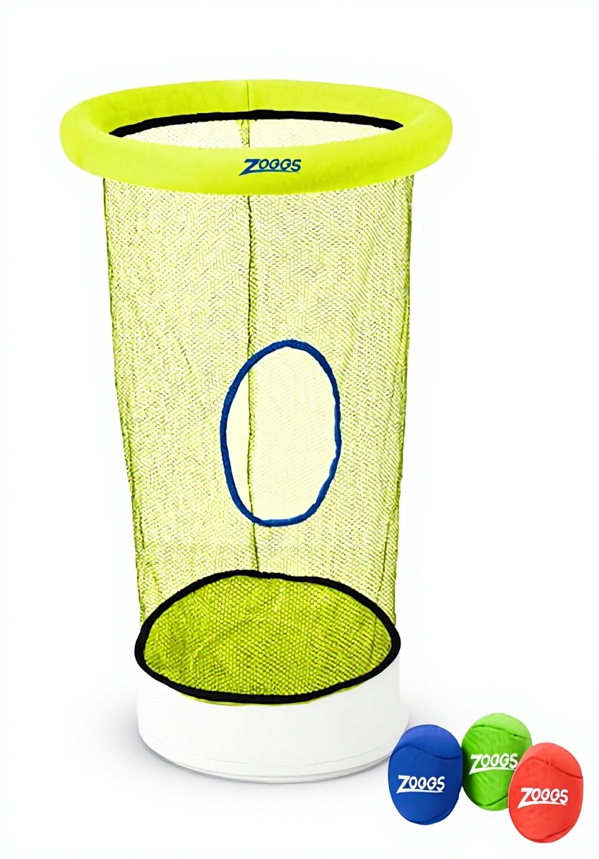 Le jeu Zoggs DIVE & DROP est conçu en nylon résistant pour une utilisation prolongée en milieu aquatique. Il inclut un filet de ramassage submersible et trois balles coulantes spécialement conçues pour encourager la plongée et la récupération sous l’eau, favorisant ainsi le développement des compétences motrices.