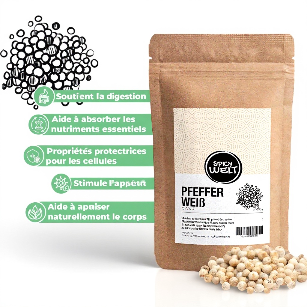 Poivre Blanc Entier Spicy Welt – Épice Noble pour Cuisine Raffinée