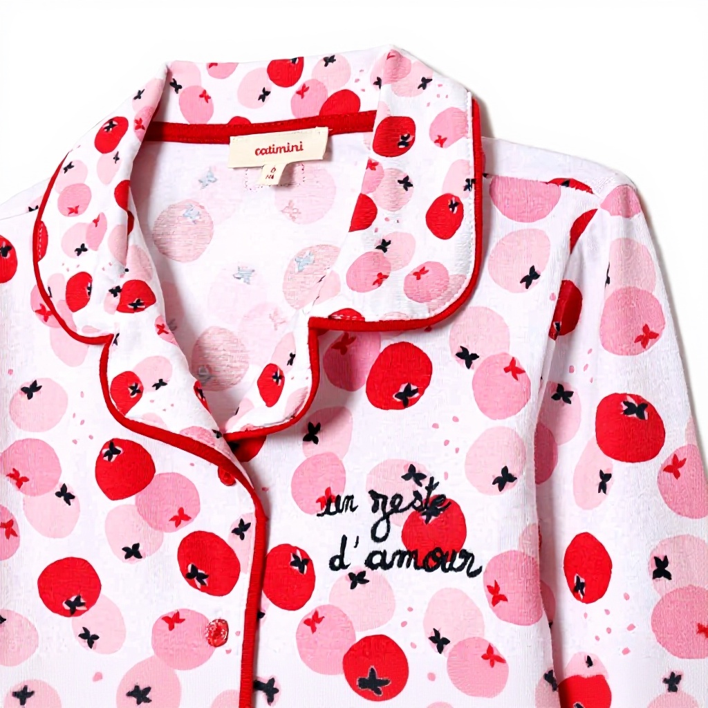 - Design élégant avec imprimé pommes et coloris rose et blanc.