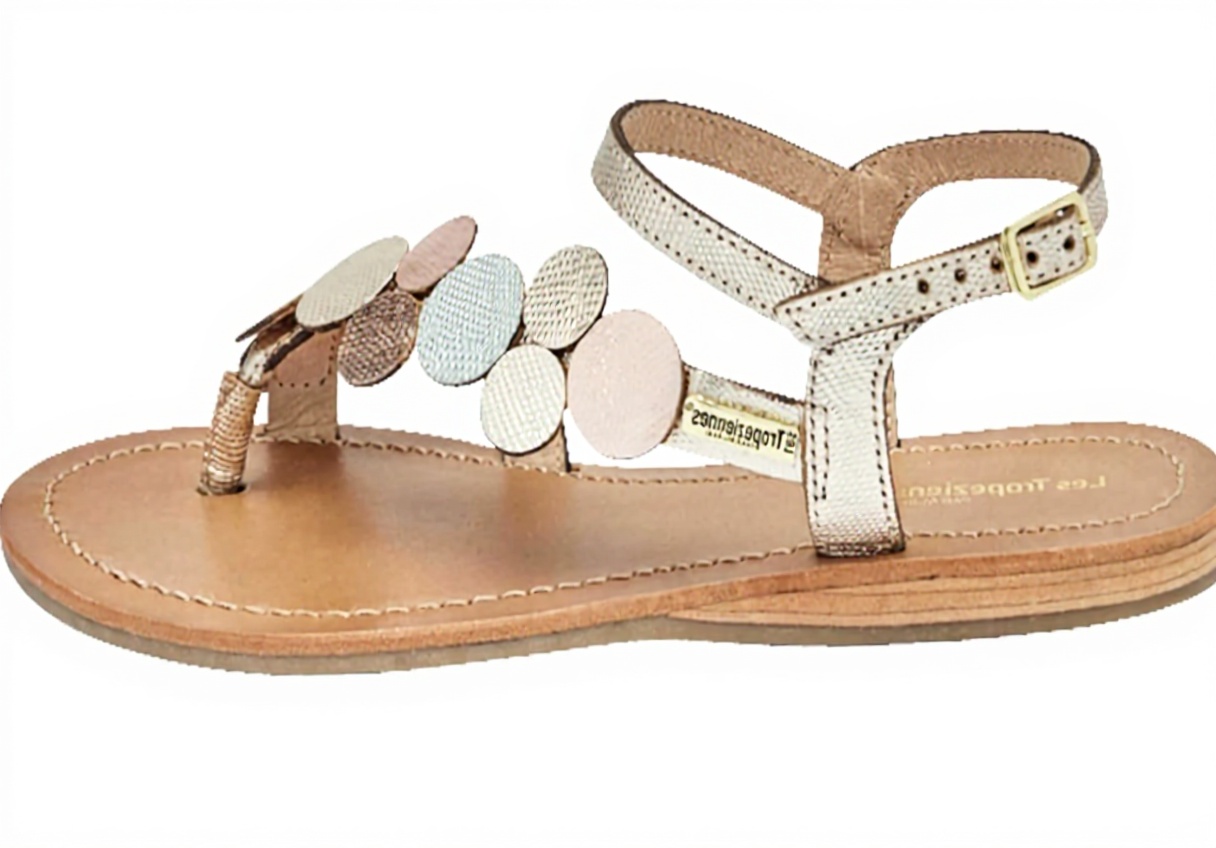 Disponibles en tailles EU 36 à 41, ces sandales s’adaptent à différentes morphologies. Les coloris incluent Tan Bronze, Blanc Or et Multicolore, avec un modèle conçu pour un ajustement précis et une semelle offrant une adhérence sûre.