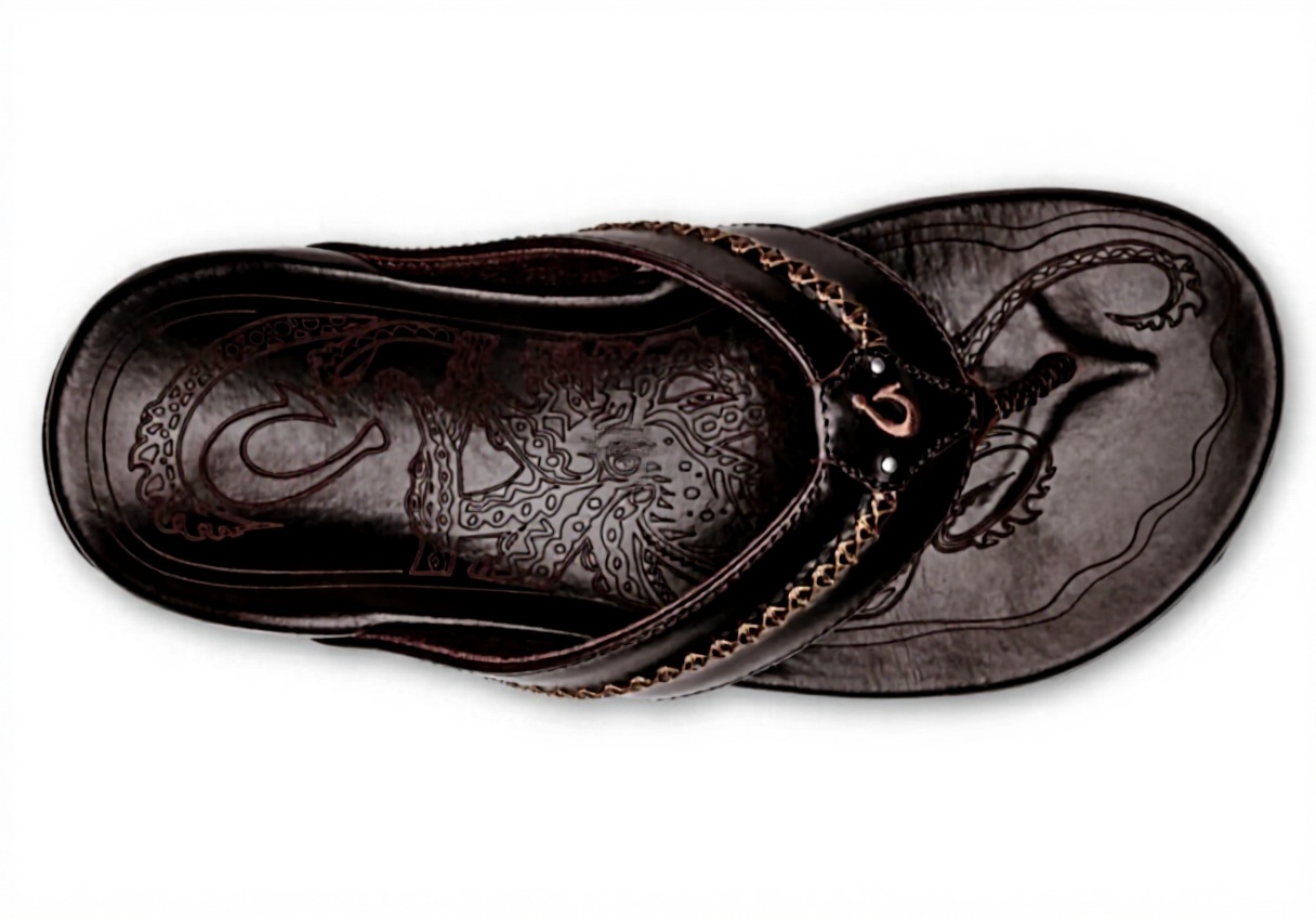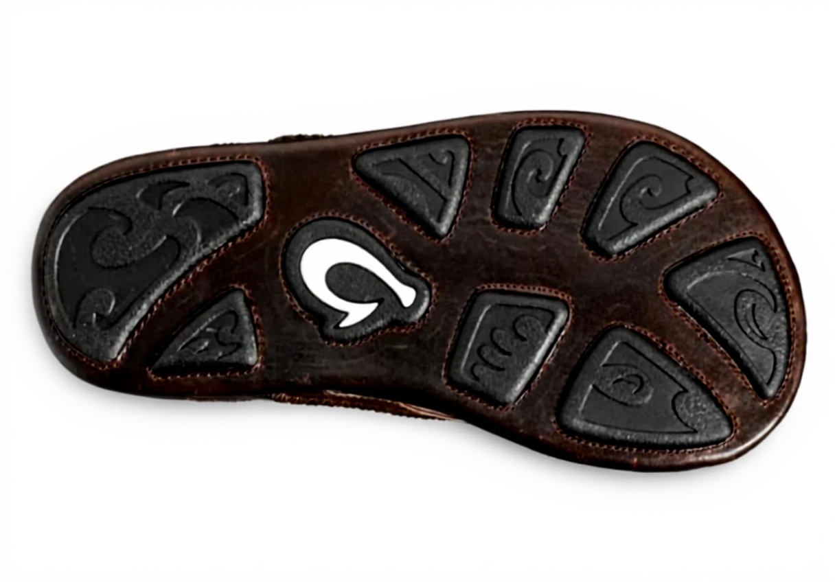 Les sandales Mea Ola d’OLUKAI sont conçues avec du cuir de qualité supérieure, s’inspirant de l’héritage des navigateurs polynésiens et de leurs techniques de construction de canoë. Elles présentent des illustrations gravées au laser sur la semelle intérieure, des surpiqûres de cils de canoë et un logo brodé, alliant artisanat traditionnel et modernité.