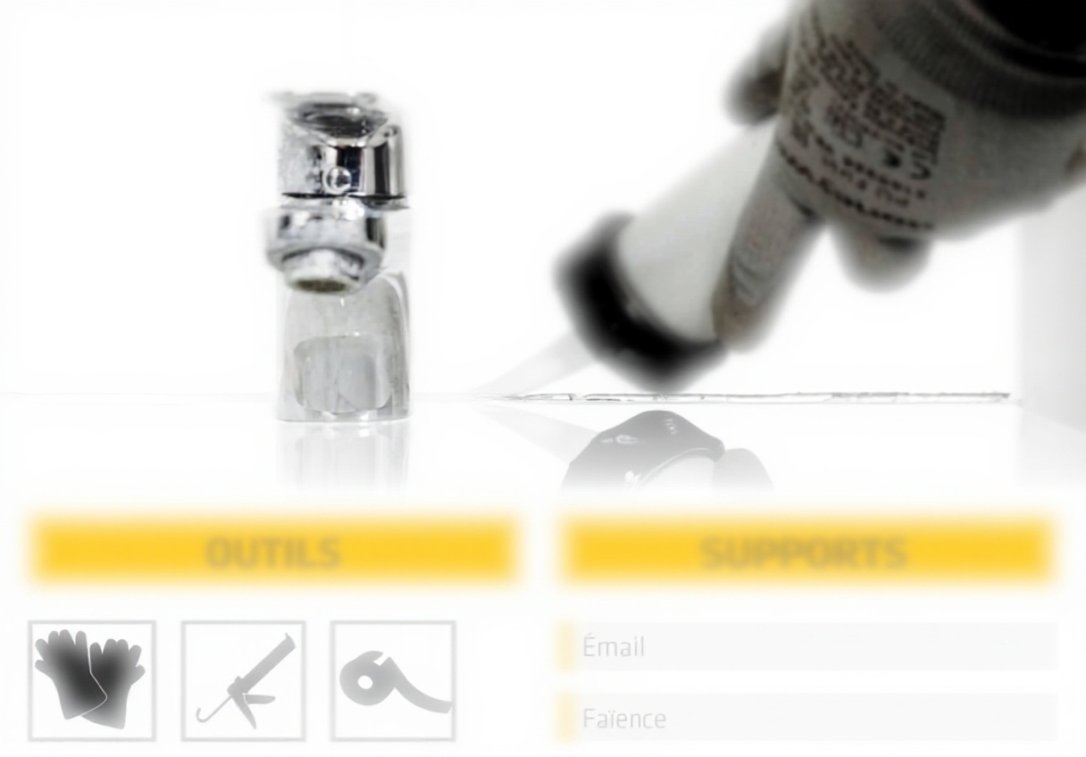 Utilisez un pistolet à mastic standard. Nettoyez et séchez la surface, appliquez en bande régulière, puis lissez avec un outil adapté pour un joint net.