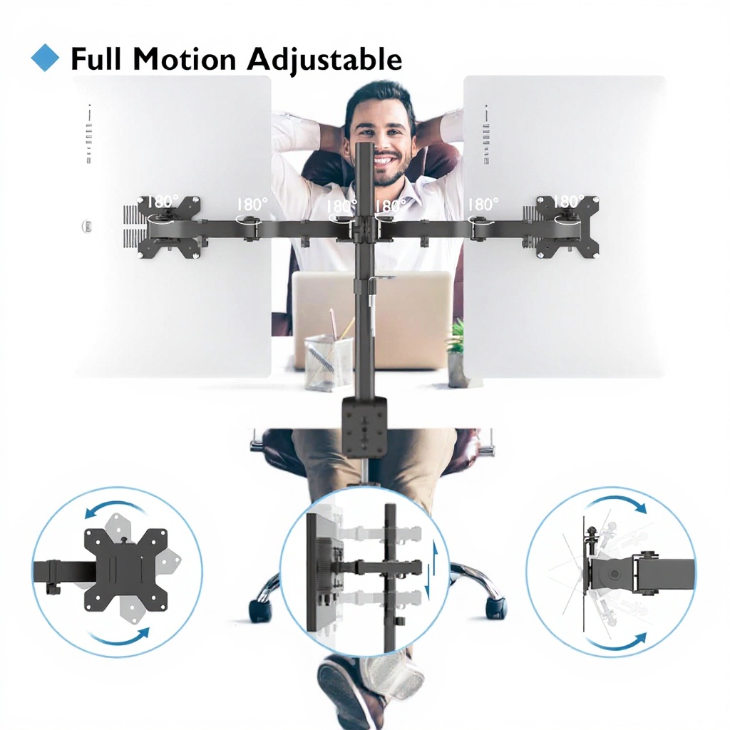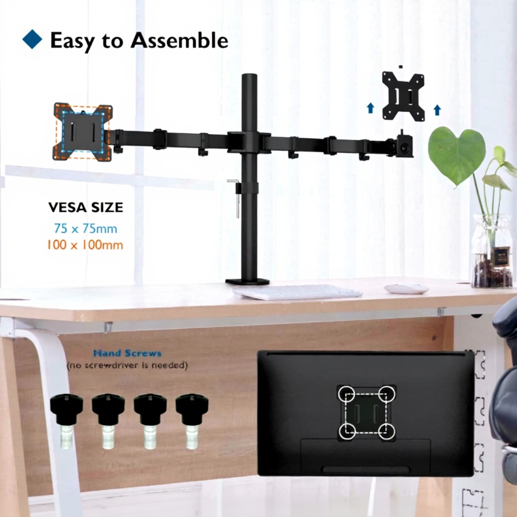 Chaque bras supporte jusqu’à 10 kg, adapté à la plupart des moniteurs de 13 à 27 pouces.