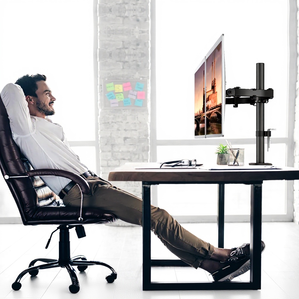 Conçu pour les professionnels, les gamers et les télétravailleurs recherchant une solution ergonomique et spacieuse. Son design adaptable convient à tous ceux qui souhaitent optimiser leur espace de travail avec deux écrans.
