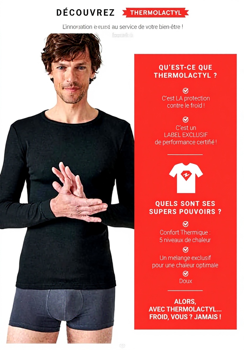 La maille Thermolactyl offre une isolation thermique supérieure tout en restant légère, contrairement aux matières ordinaires.