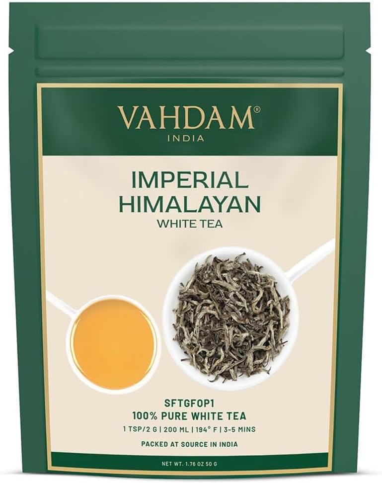 Ce thé blanc impérial provient des pentes brumeuses de l’Himalaya, où sont récoltées exclusivement de jeunes pousses et bourgeons pour une qualité exceptionnelle. Conditionné sous vide dans les 24 à 72 heures après récolte, il préserve toute sa fraîcheur et ses arômes délicats. La marque VAHDAM assure une traçabilité depuis les plantations premium indiennes jusqu’à votre tasse.