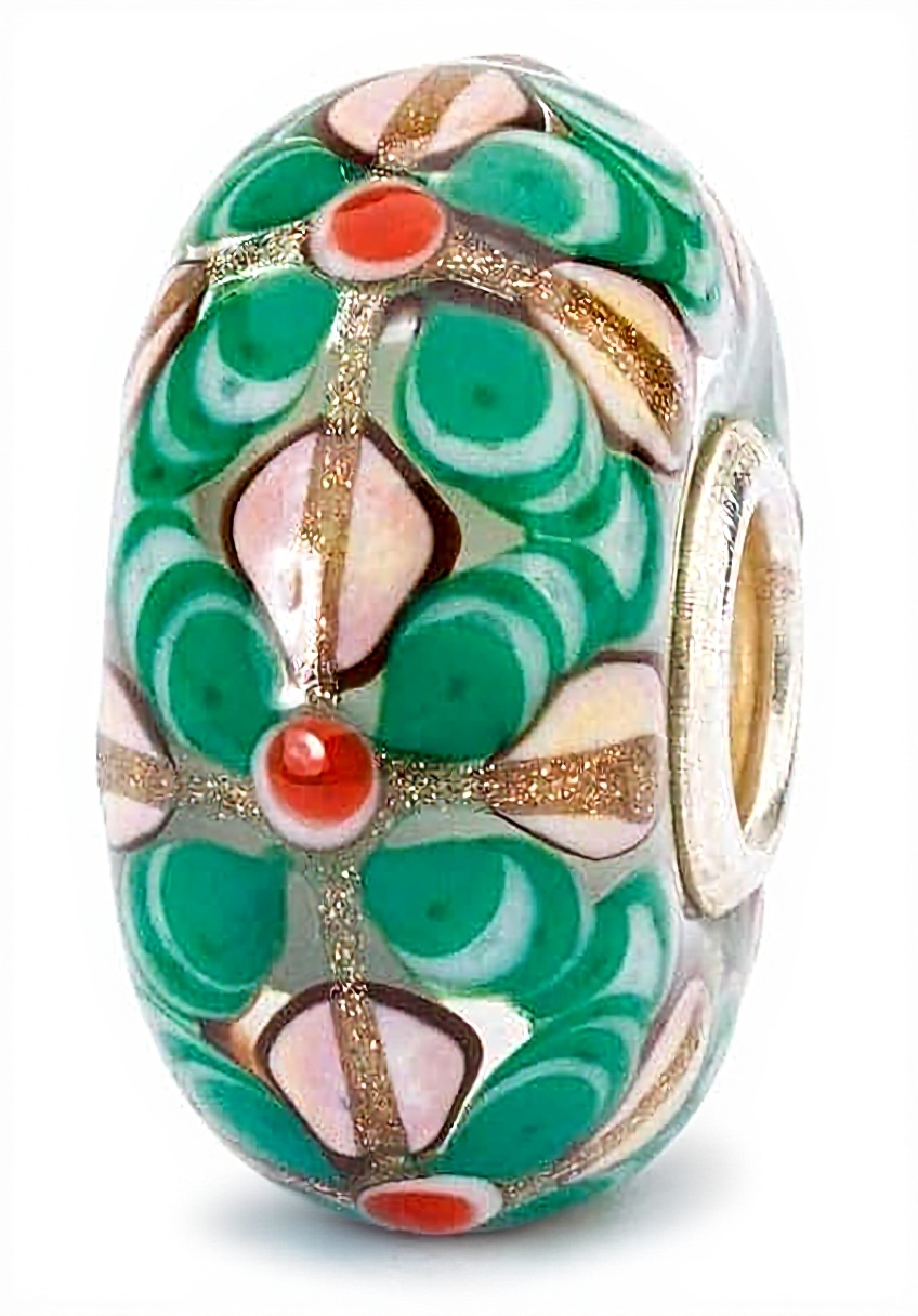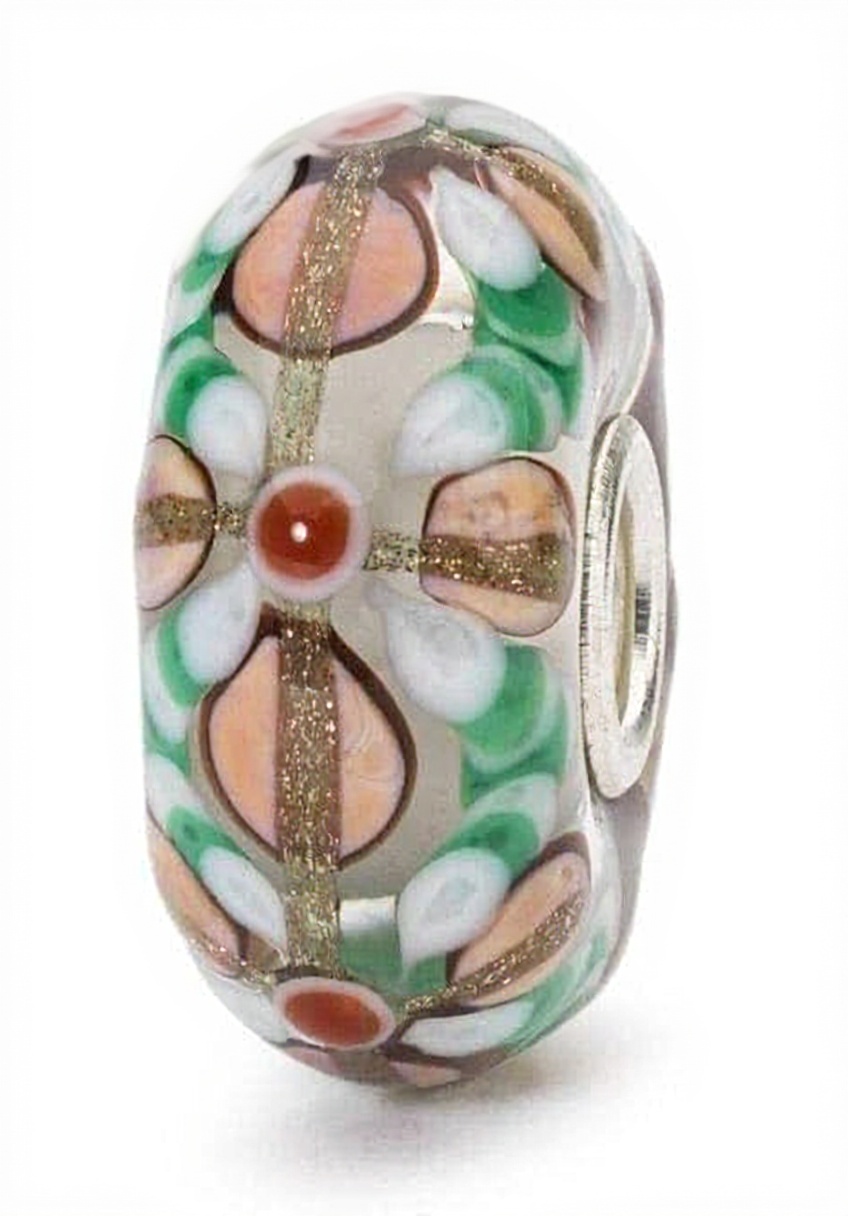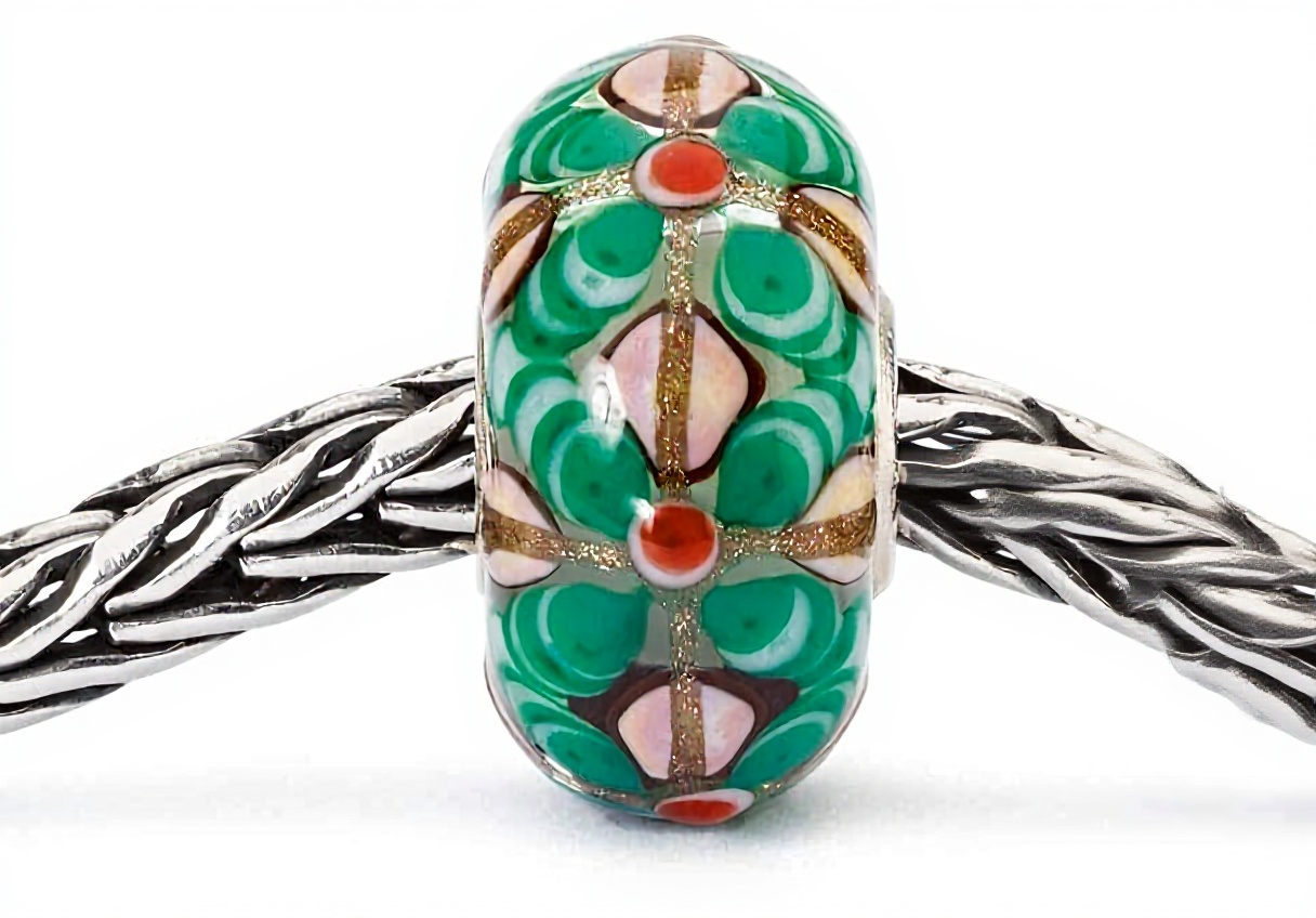 La perle mesure environ 10,2 x 7,2 x 0,6 cm et pèse 1,95 g. Elle est composée d’argent sterling et de verre, avec un fini partiellement noirci pour un aspect vintage. Le modèle TGLBE-10428 est conçu pour un usage durable et s’adapte aux systèmes de bracelets et colliers Trollbeads.