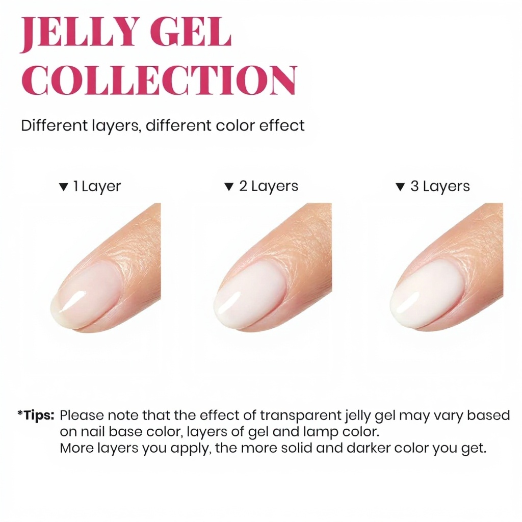 Appliquez plusieurs couches minces en laissant sécher entre chaque application : une couche pour un effet jelly translucide, deux couches pour un blanc nuancé, trois couches pour une couverture opaque.
