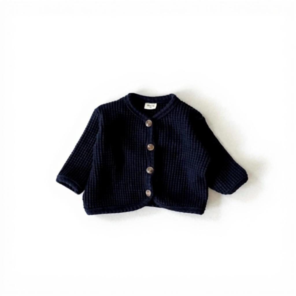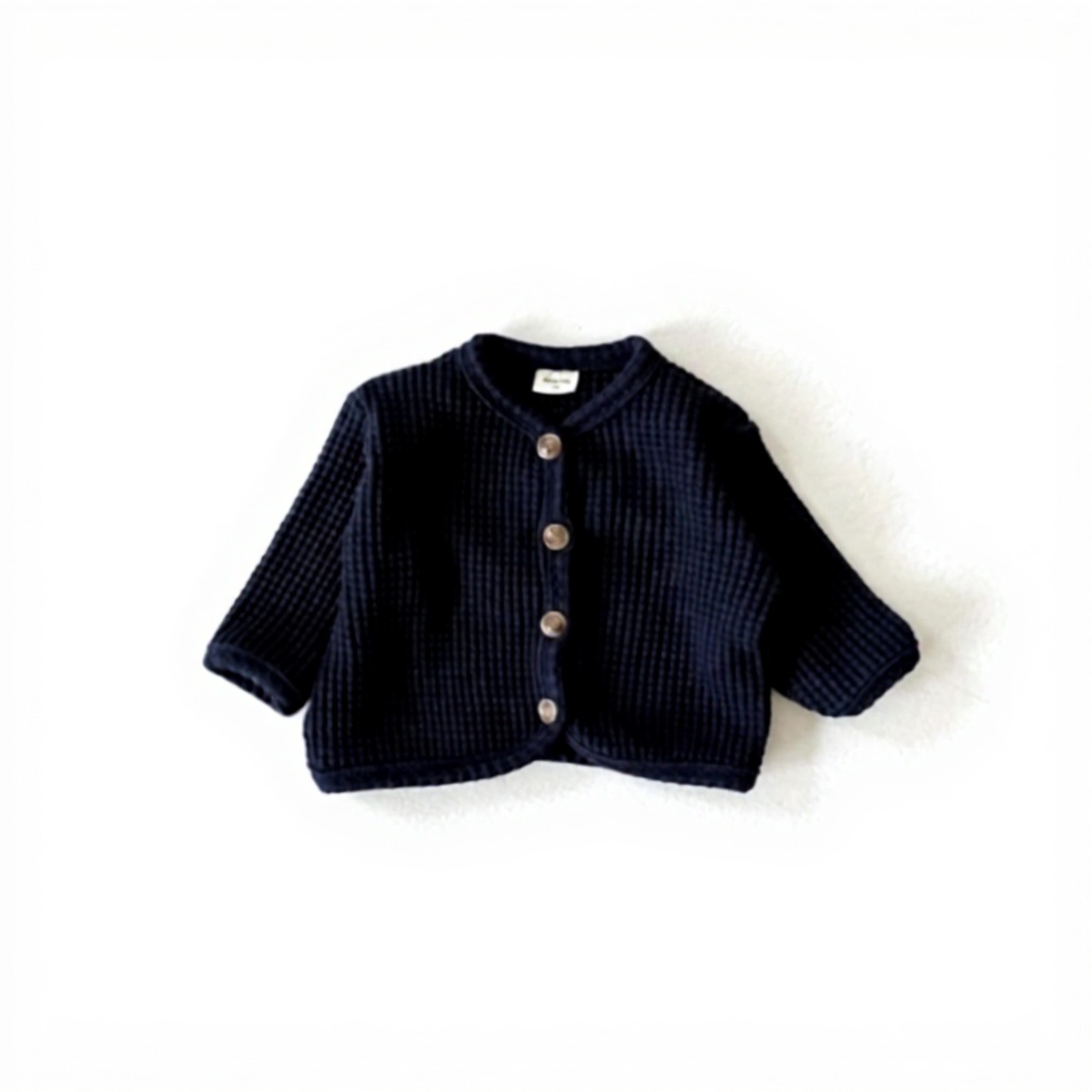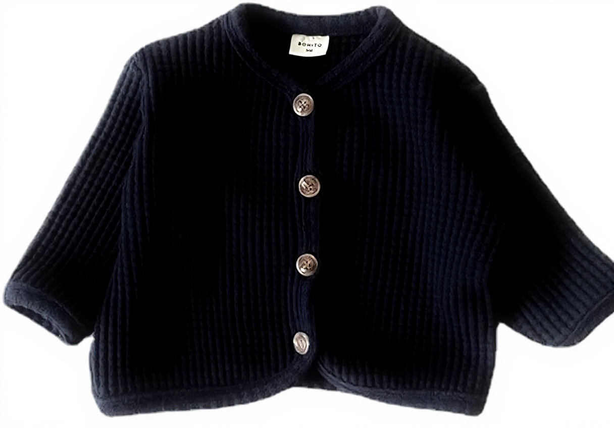 Disponible en tailles de 0-6 mois à 2-3 ans, avec des options de couleur marine et brun. Le matériau est entièrement en coton, léger et adapté aux peaux sensibles des bébés. Le style moderne et les finitions soignées garantissent une durabilité même après de nombreux lavages.